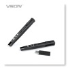 Pen-style presenter with thumb mouse Model: V-898 2.4GHz RF technology Function: laser pointer, page up/down thumb mouse, hot keys, built-in memory (optional) Feature: mini USB receiver can stored into transmitter for easy carry Control distance: 8m/26ft Dimension: 147 x 22 x 19mm Battery: AAA x 1 USB plug-and-play, no driver required Operating system: Microsoft Windows 98/Se/Me/2000/XP/Vista/7, Mac OS and Linux